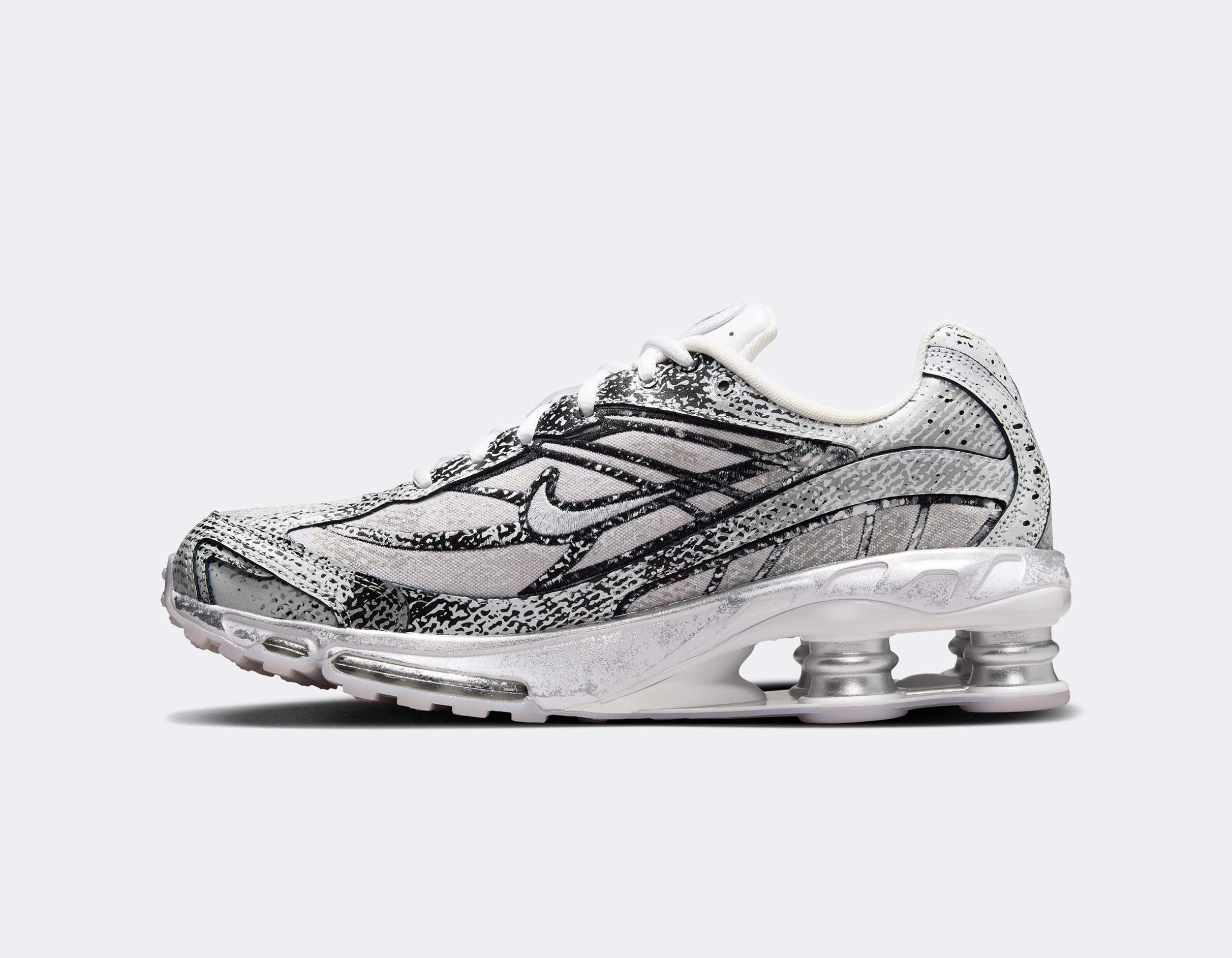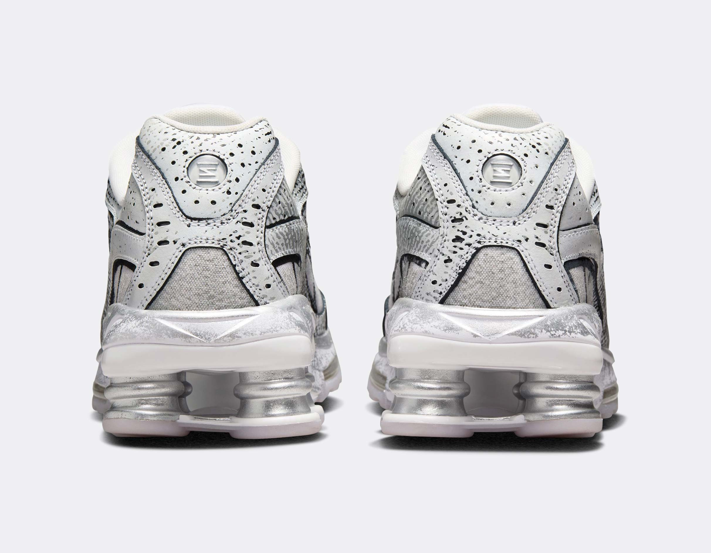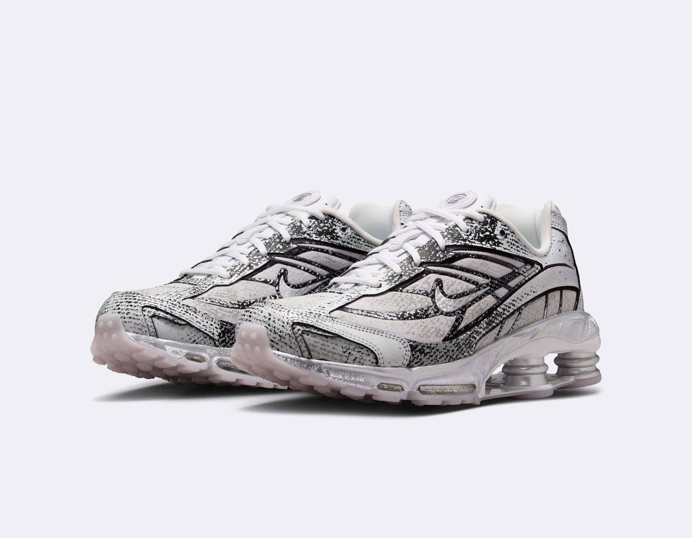 Cette Shox Ride 2 revisite l’icône des années 2000 avec une finition distressed unique et un coloris Metallic Platinum qui capte la lumière à chaque pas.