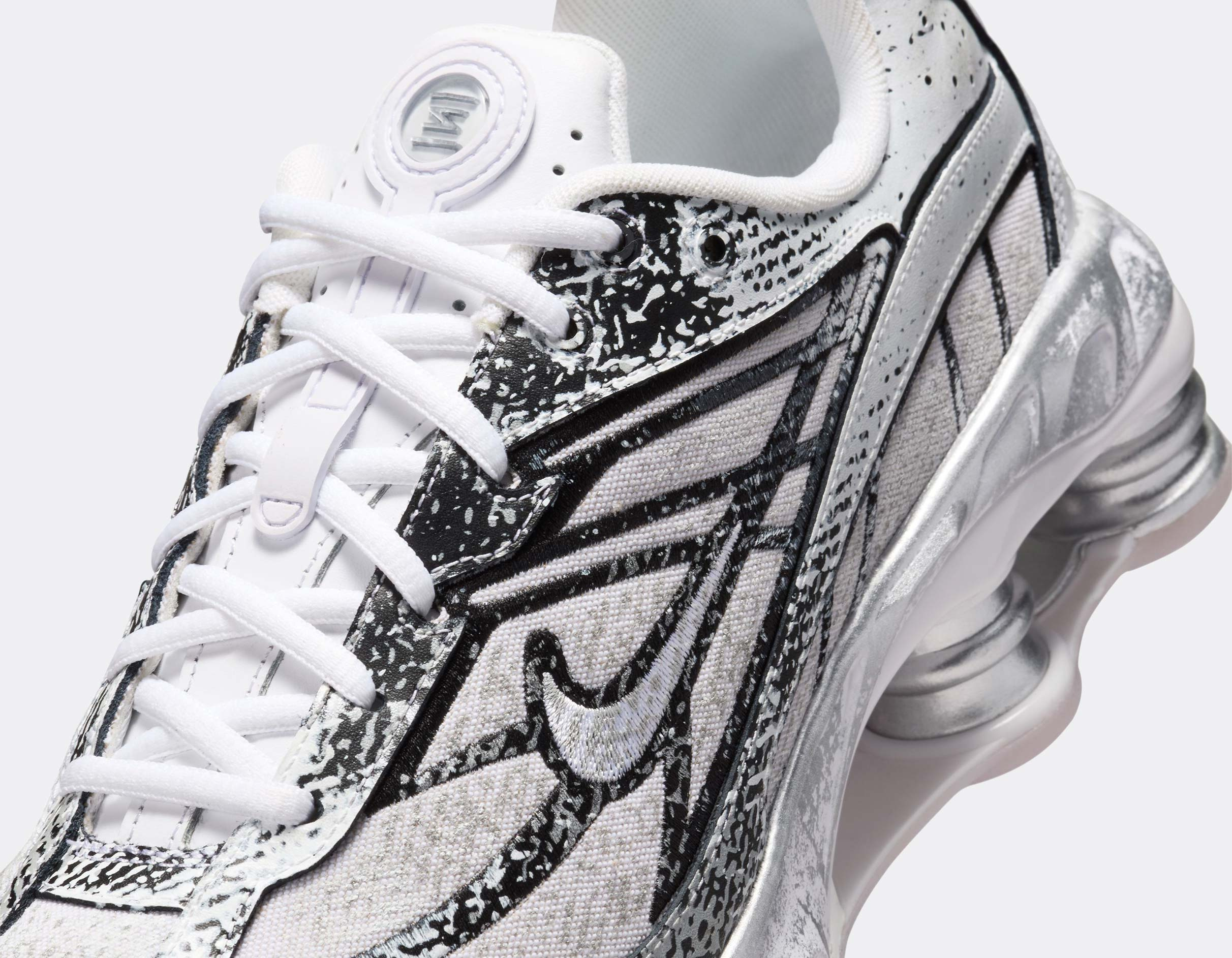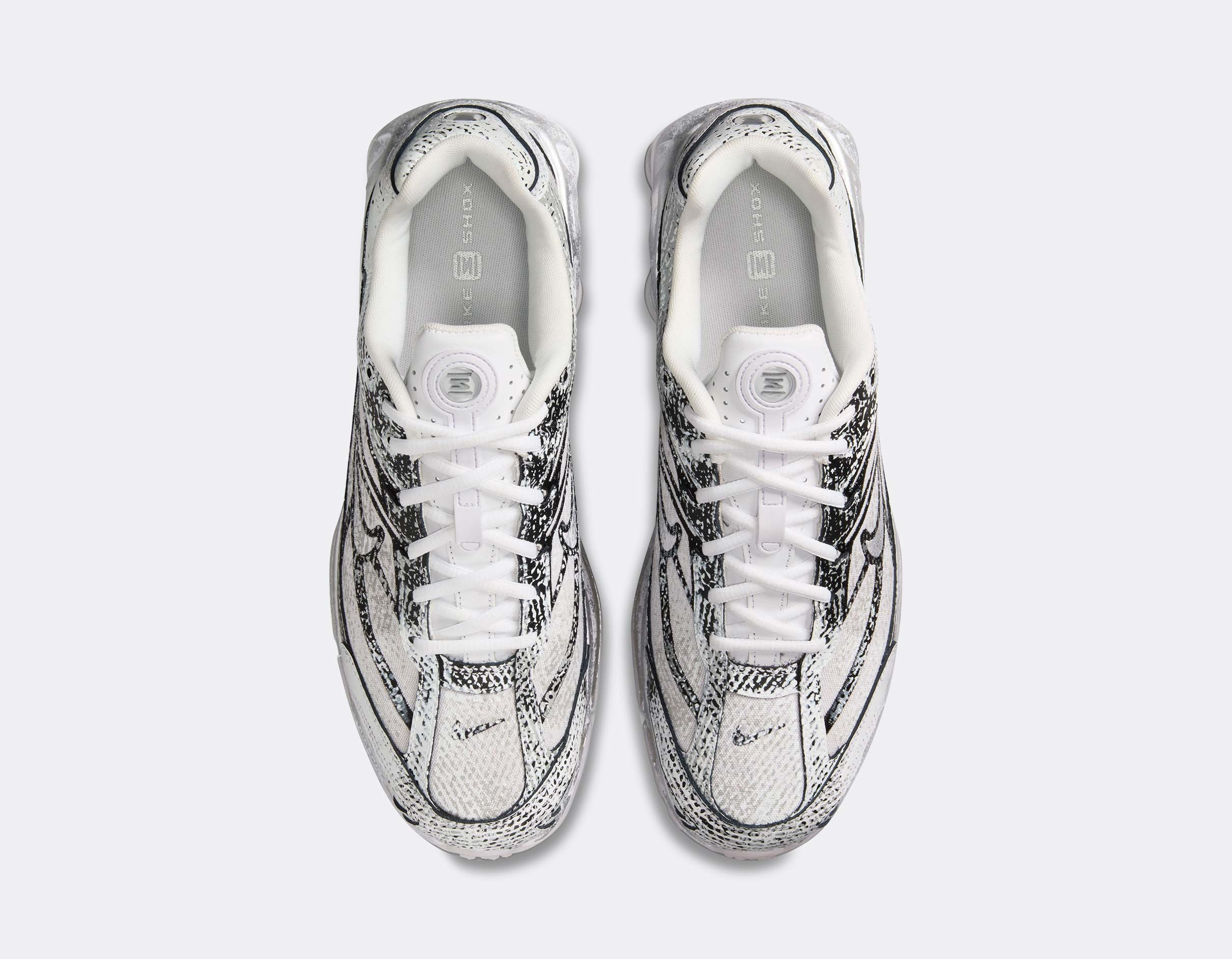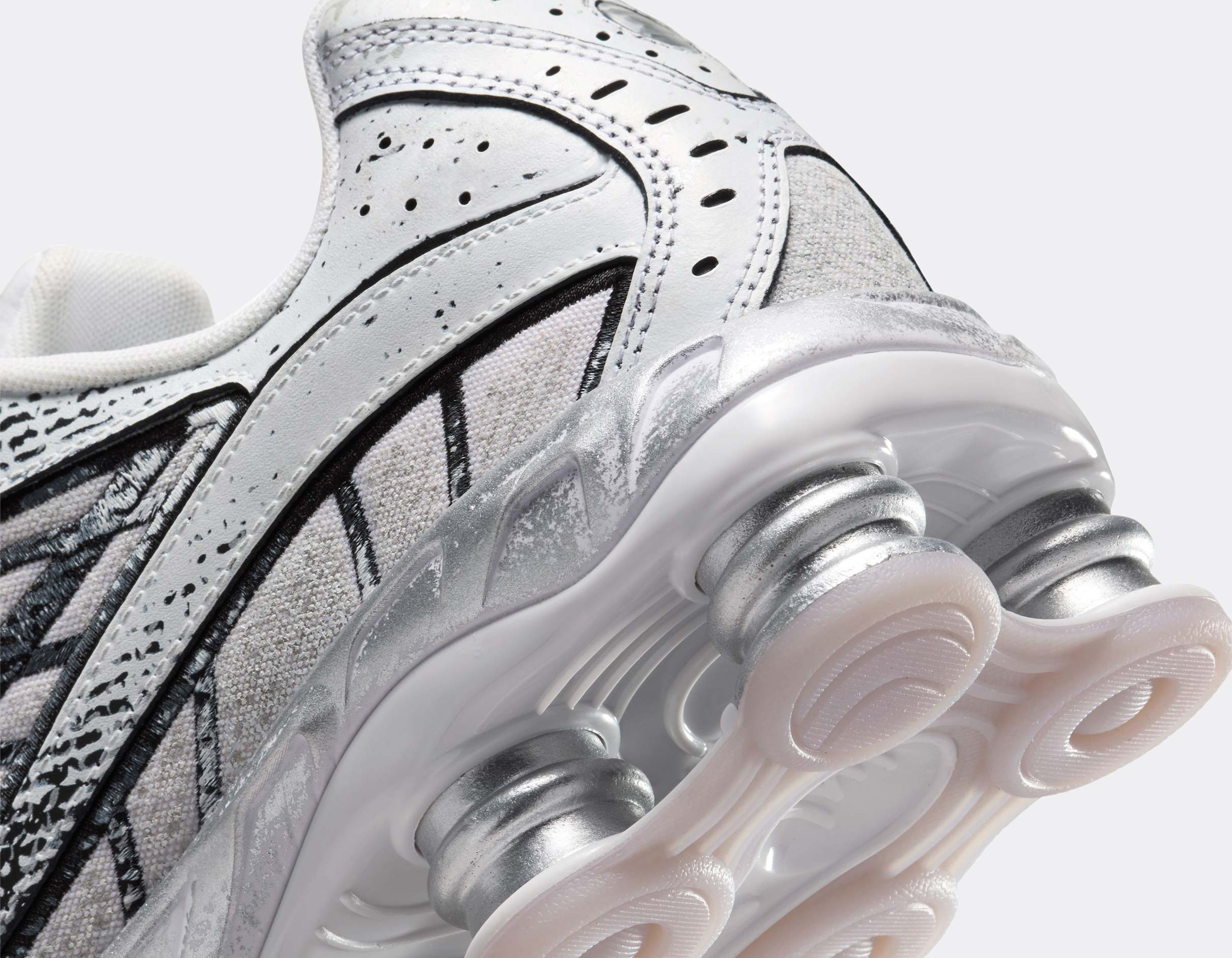 Cette Shox Ride 2 revisite l’icône des années 2000 avec une finition distressed unique et un coloris Metallic Platinum qui capte la lumière à chaque pas.