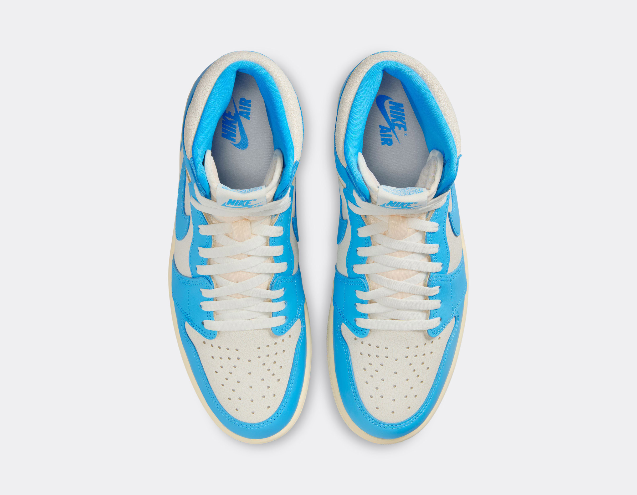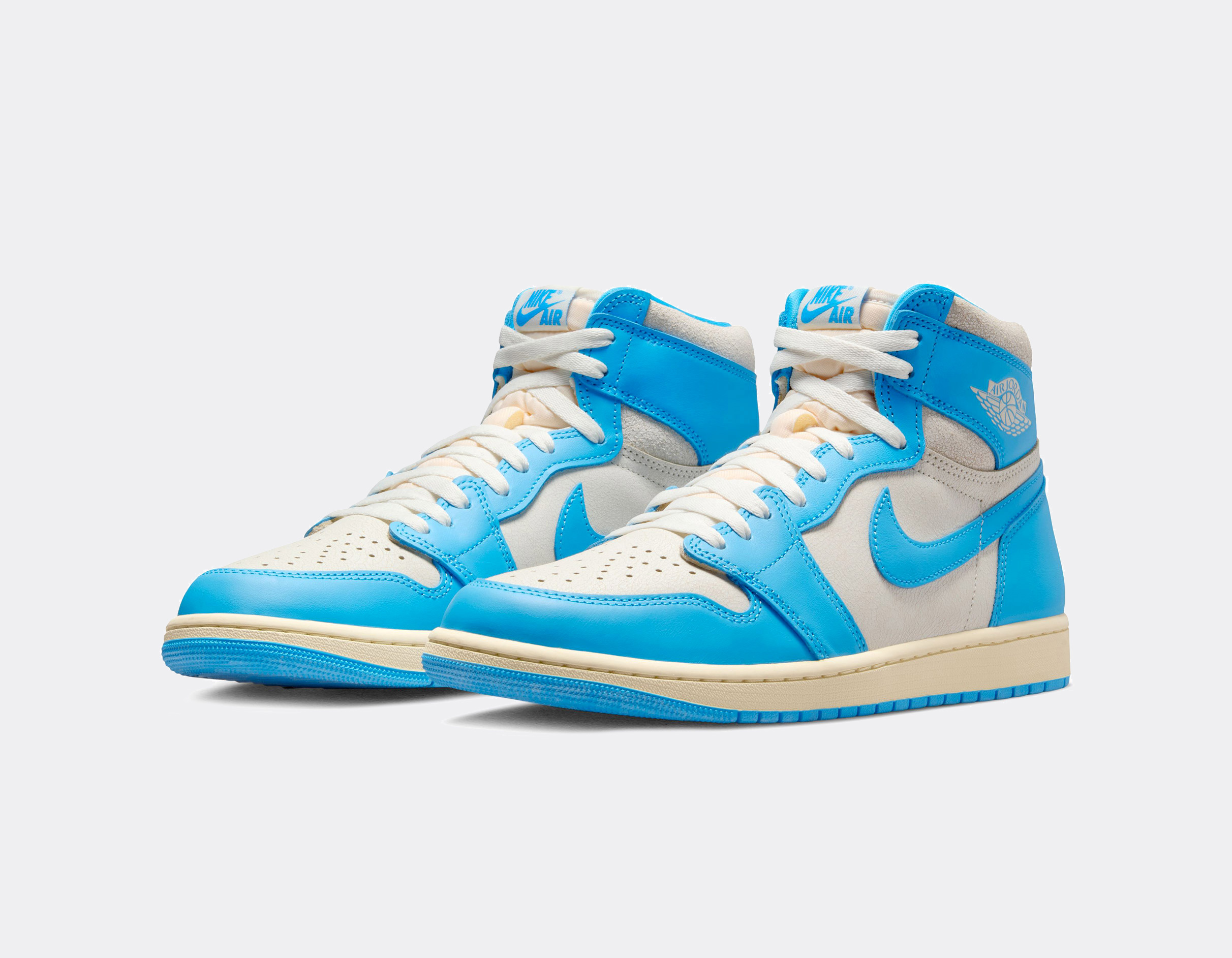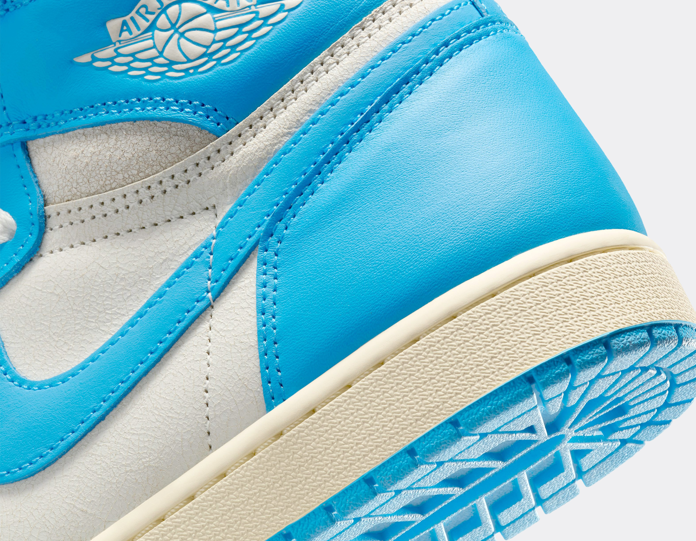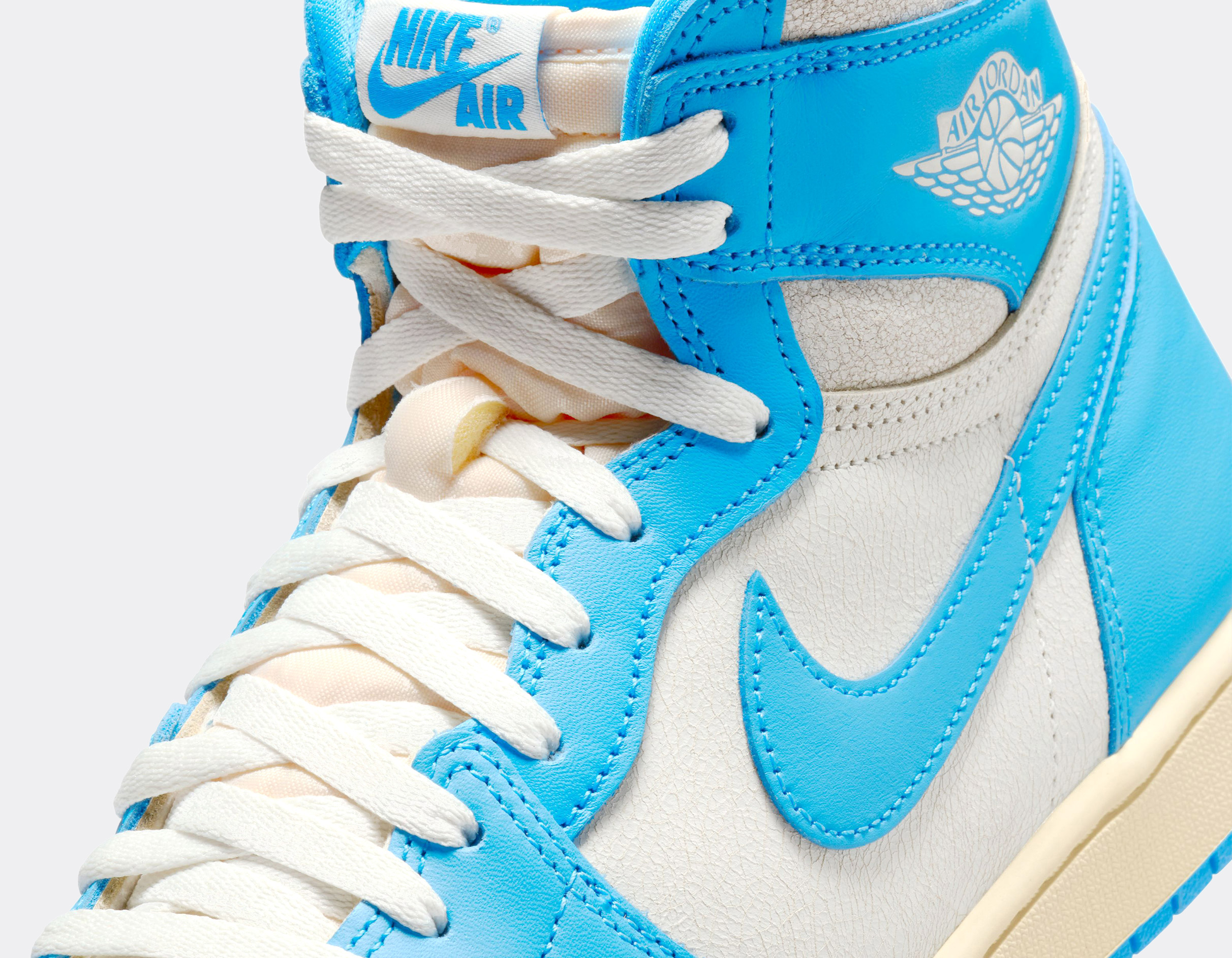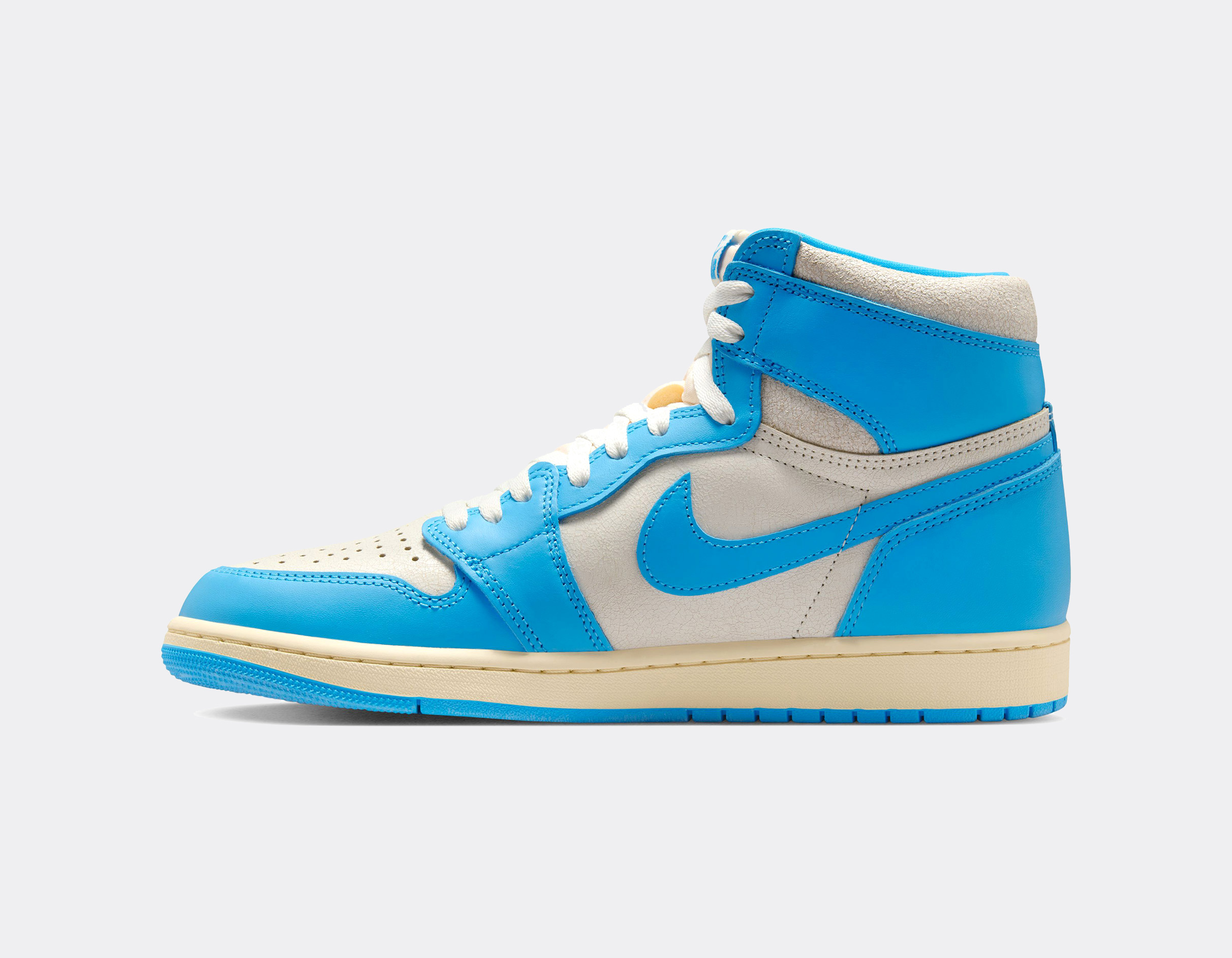 Le coloris University of North Carolina, université de Michael Jordan, fait son grand retour dans une approche respectueuse de l’édition originale. Les teintes bleu Carolina et blanc s’accordent parfaitement, tandis qu’une patine subtile appliquée sur certains empiècements apporte une touche vintage assumée.