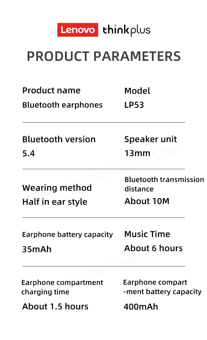 | Nom du produit | Ecouteurs bluetooth Lenovo LP53 | ||||