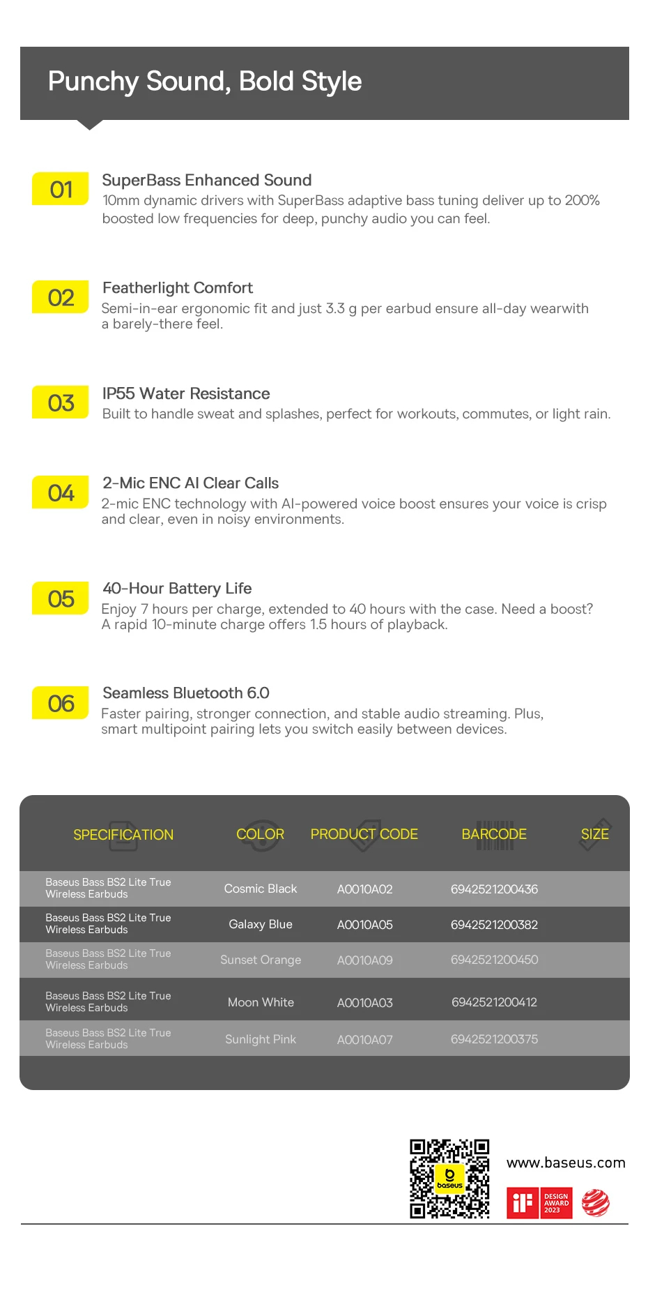 | Nom du produit | Baseus Bass BS2 Lite | ||||