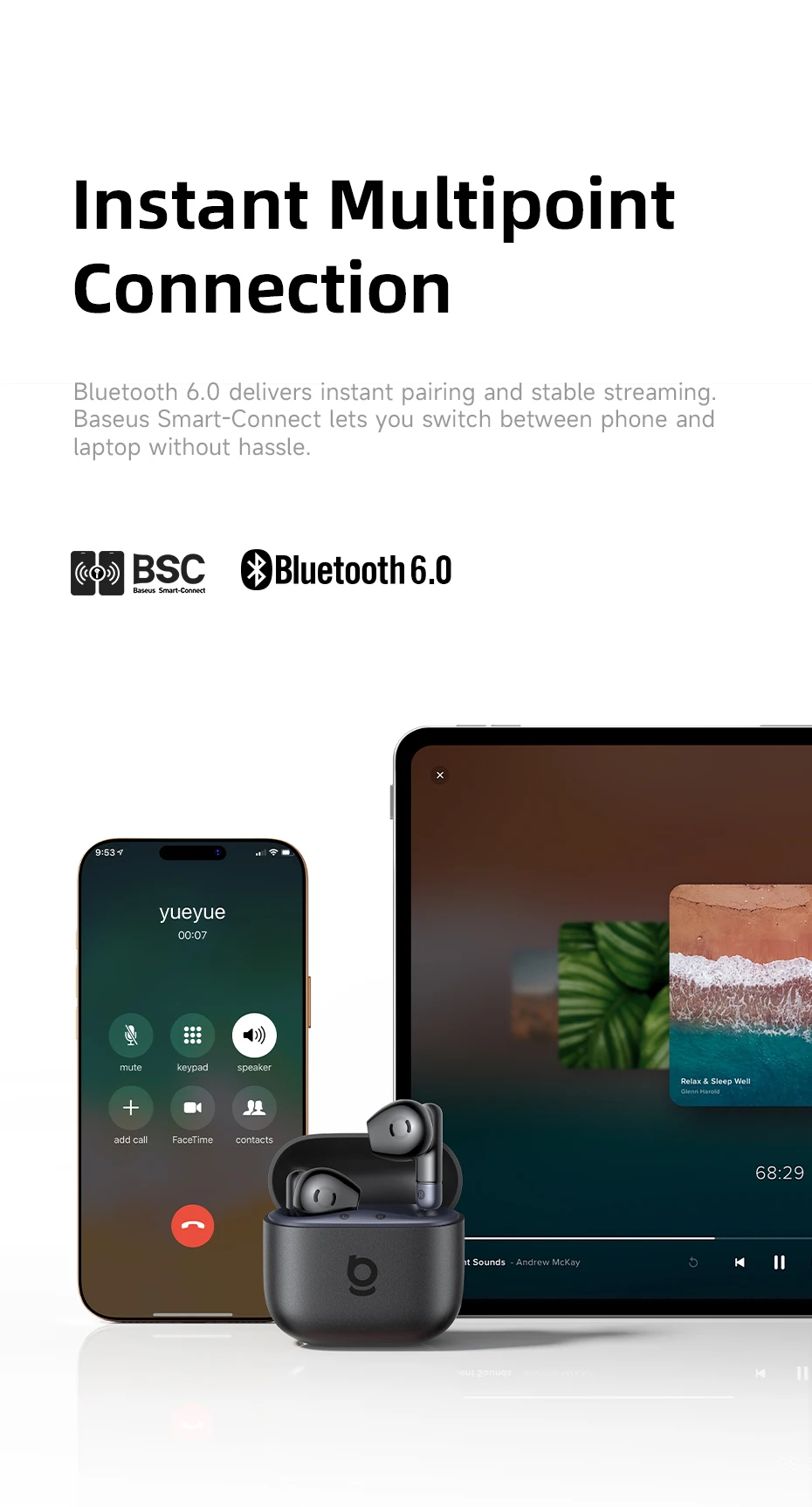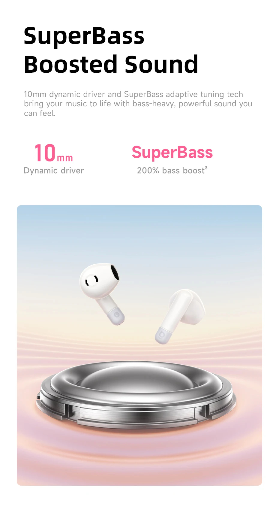 Le Baseus Bass BS2 Lite délivre un son clair avec des basses renforcées, offrant une écoute agréable pour la musique, les vidéos et les appels. Sa technologie Bluetooth assure une connexion stable et rapide avec la majorité des smartphones, tablettes et ordinateurs compatibles.